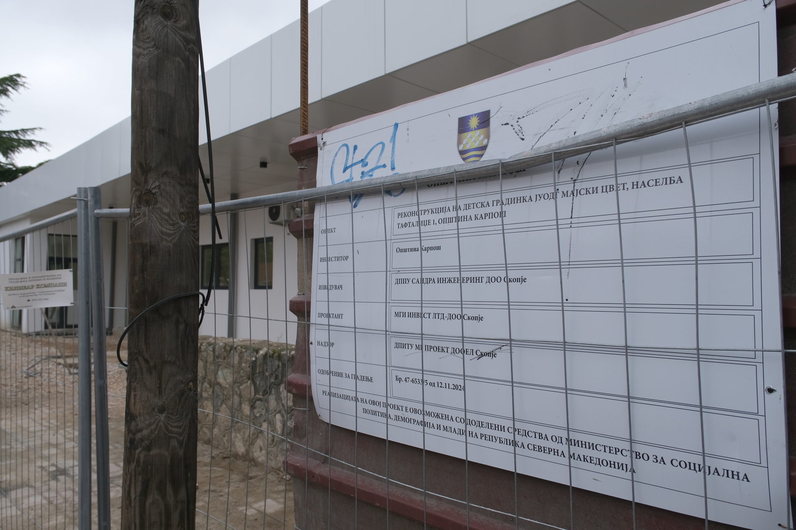 Денеска (11.02.2026 година), градоначалникот на Општина Карпош, Сотир Лукровски и заменик министерот за социјална политика, демографија и млади, Ѓоко Велковски, извршија увид во тековните градежни активности на детската градинка „Мајски цвет“ во Тафталиџе 1.