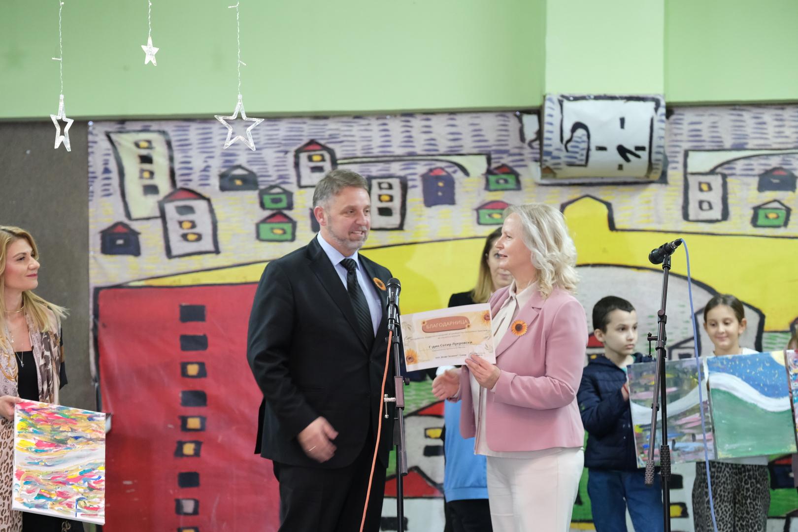 Во оваа пригода, организаторите му врачија благодарница на градоначалникот Сотир Лукровски, за соработка, поддршка и придонес во развојот на инклузивни практики во ООУ „Владо Тасевски“. Првиот човек на Општината доби и прекрасна уметничка слика, изработена од вредните раце на креативните дечиња. Општинскиот татко напомена дека локалната самоуправа останува посветена на унапредување на инклузијата, креативноста и еднаквите можности, со визија за градење на заедница во која различностите се прифатени, вреднувани и поддржани.