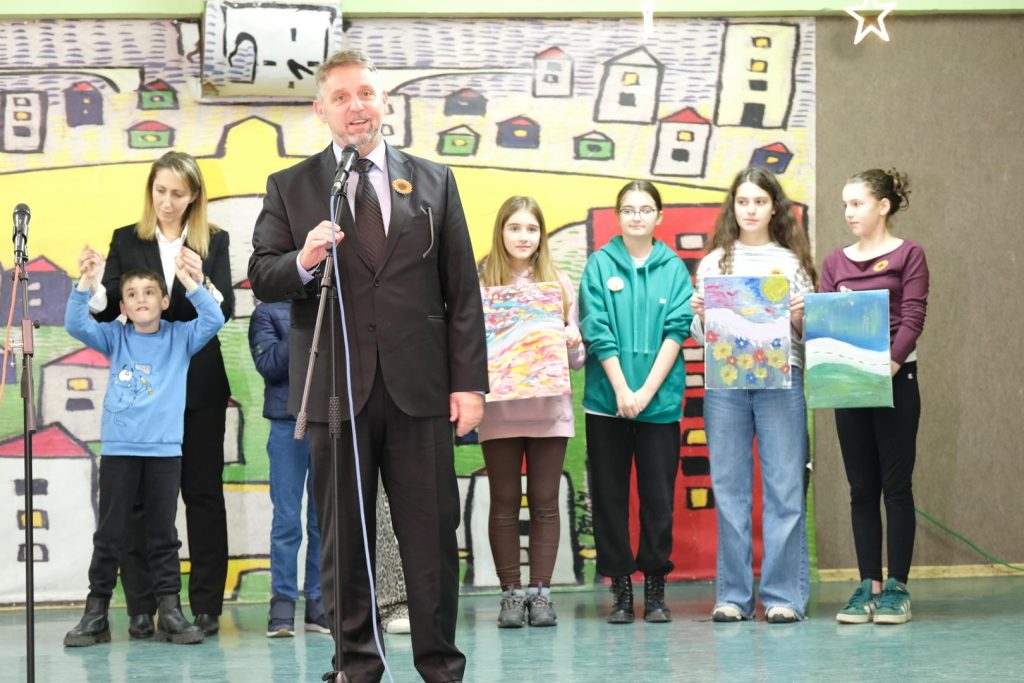 По тој повод, градоначалникот Сотир Лукровски, претседателот на Советот, Христо Саракинов, советникот Александар Петровски и претставник од Одделението за образование од Општина Карпош, присуствуваа на денешната свеченост, каде учениците со типичен и атипечен развој во придружба со возрасни уметници се претставија со своите музички и ликовни дела. Настанот го одбележа креативниот израз на талентираните ученици кои настапија заедно со своите гости од „Леон Бенд“, кои воедно се претставници од младинскиот центар „Крик“. Нивниот настап беше конкретен пример како може уметноста, креативноста и заедништвото да ја подигнат свеста за значењето на инклузијата, создавајќи простор за секое дете и секој возрасен да го искаже својот став во јавноста. Ваквиот концепт овозможува природно поврзување меѓу различни генерации, таленти и способности, со што се поттикнува прифаќање и развивање на инклузивни вредности во училиштето и заедницата.