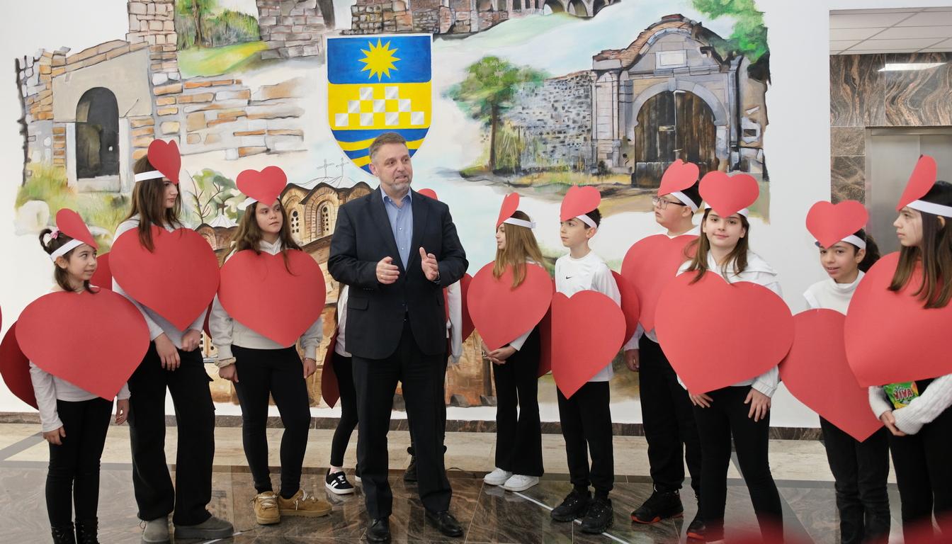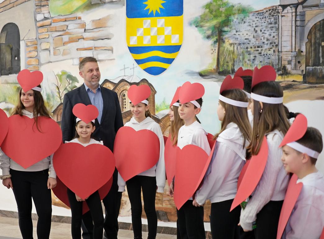 -Ми претставува огромна чест и задоволство што денеска, токму вие, сте ни гости во нашата општинска зграда и јас како домаќин ви посакувам многу среќа, радост и успех при презентацијата на заедничката маска, која ја претставува нашата Општина Карпош на дефилето оваа година, по повод денот на шегата- Први Април. Вие, нашите најмлади жители, основци од Карпош, сте нашата сила и енергија. Вие ни ја давате и мотивацијата Општина Карпош да ја водиме просперитетно и да ја направиме развиено и убаво место за живеење, – истакна првиот човек на локалната самоуправа, Сотир Лукровски.