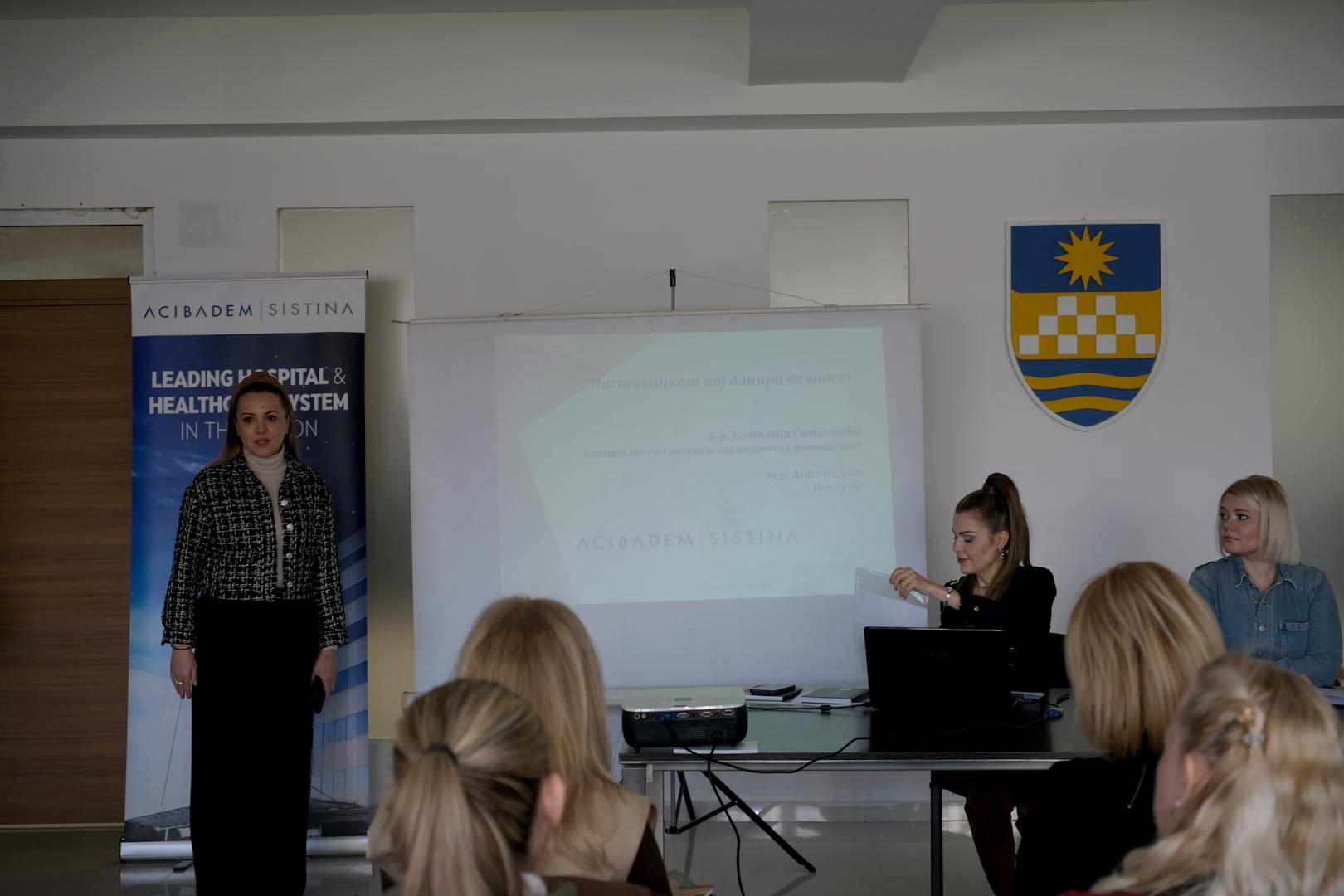 Денеска, на иницијатива од д-р Камелија Симеонова, Специјалист по детска и адолесцентна психијатрија од приватната болница ,,Аџибадем Систина”, во просториите на Општина Карпош се одржа првата психо-едукативна работилница, наменета за наставниците и стручните соработници од општинските основни училишта. Централна тема на работната сесија беше стручната и применлива интерактивна едукација, насочена кон психолошката стабилност на наставниот кадар. Во рамки на презентацијата, акцентот беше насочен кон прашањето за психолошкиот товар кој го носат наставниците, а дискусијата заврши со кратка размена на меѓусебни искуства од наставната пракса.
