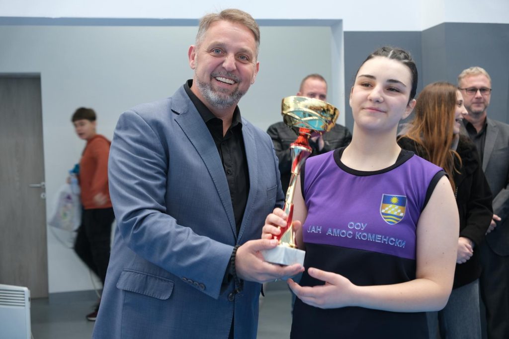 Во спортска сала „Партизан“ каде се одигра финалето во одбојка за девојчиња, убедливо славеше екипа од ООУ „Јан Амос Коменски“ која ги совлада своите ривалки од ООУ „Владо Тасевски“ со резултат 2:0 во сетови. Женската екипа од Тафталиџе беше пофокусирана и со цврста игра на мрежата, ги заврши двата сета во своја корист со идентичен резултат 25-15.