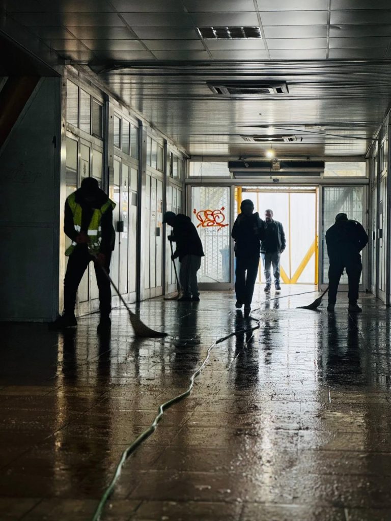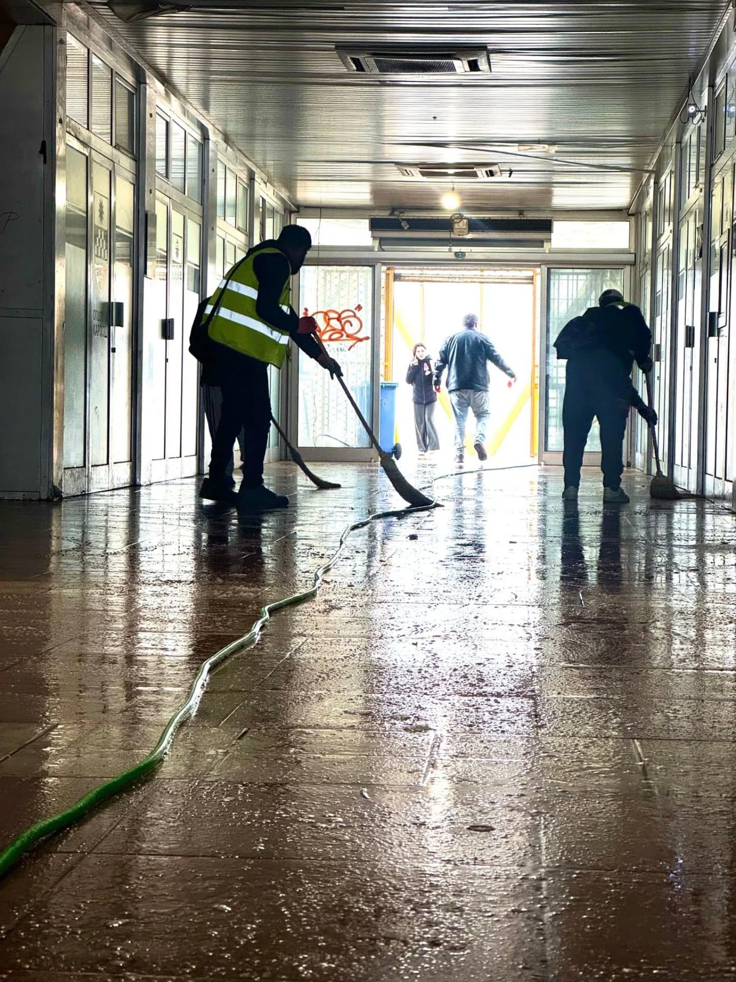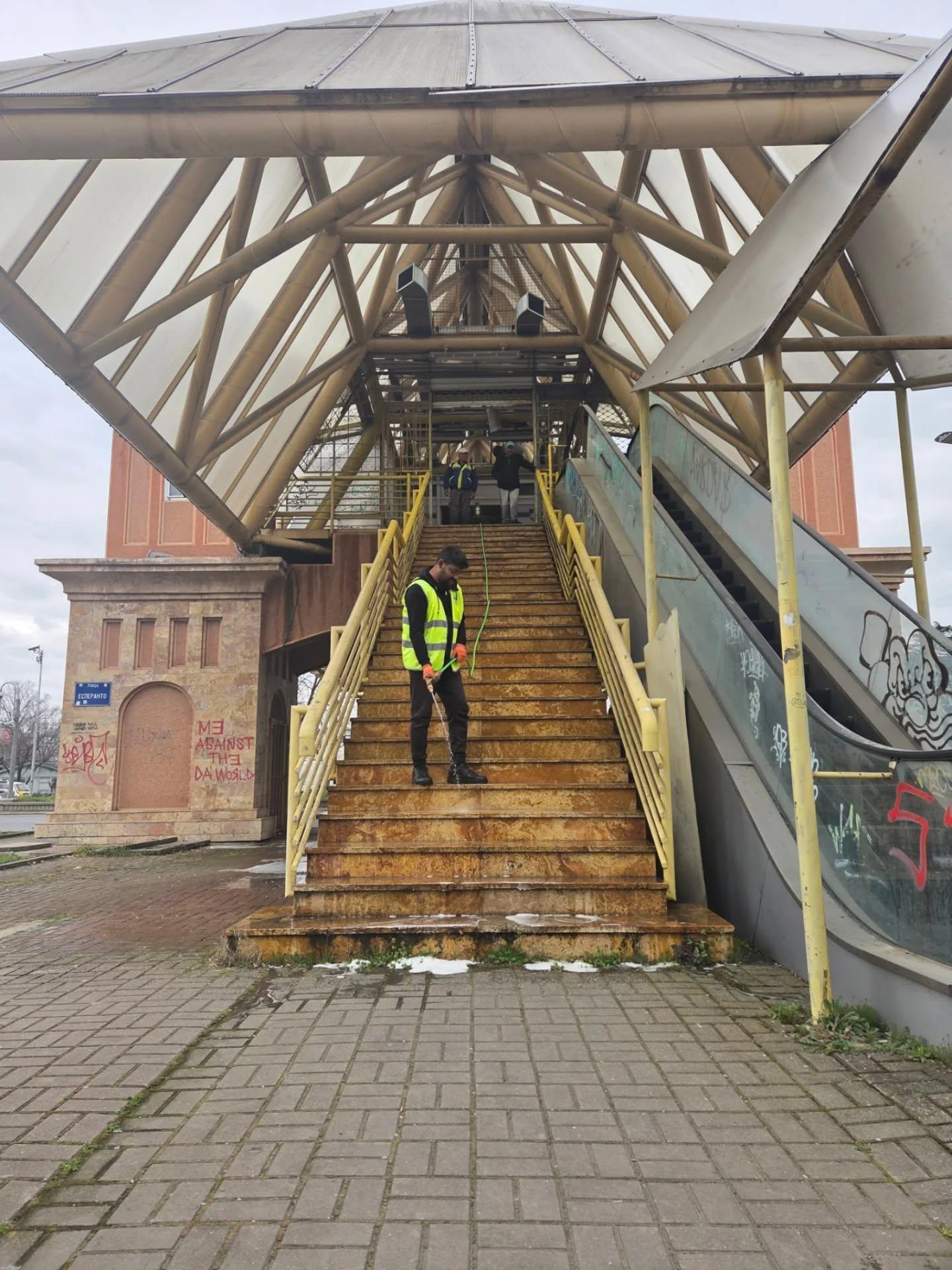 Општинските служби задолжени за одржување на хигиената во Карпош започна акција за чистење на надвозникот Влајко.