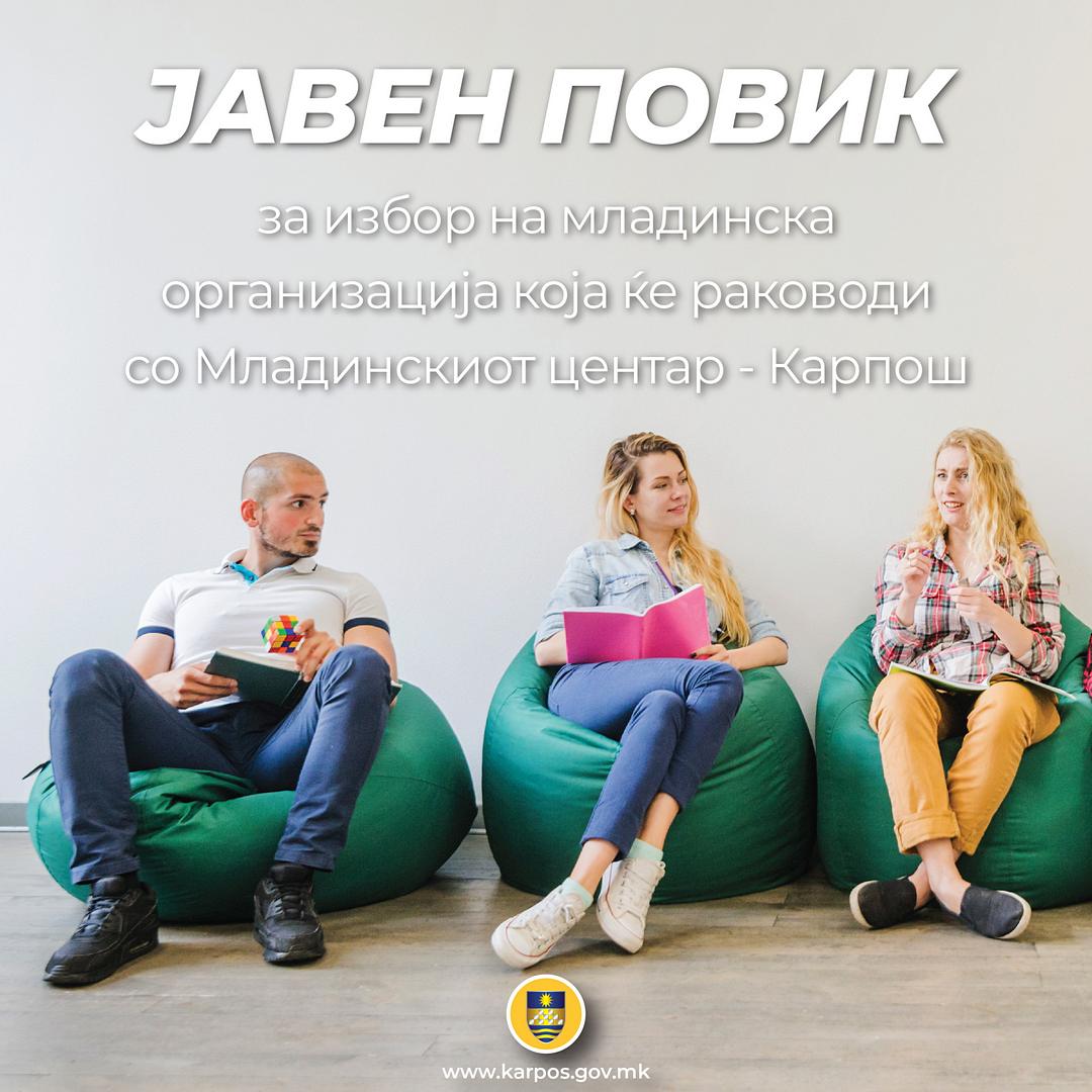 ЈАВЕН ПОВИК ЗА ИЗБОР НА МЛАДИНСКА ОРГАНИЗАЦИЈА ИЛИ ОРГАНИЗАЦИЈА НА МЛАДИ КОЈА ЌЕ РАКОВОДИ СО МЛАДИНСКИОТ ЦЕНТАР – КАРПОШ