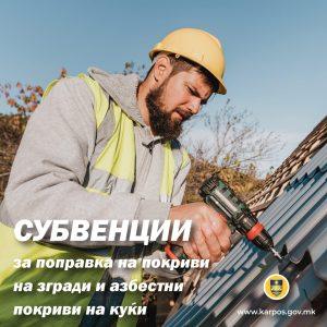 📍 ЈАВЕН ПОВИК за доделување финансиска подршка за поправка и санација на кровни покривачи на станбени згради за колективно домување и замена на азбестни кровни покривачи на индивидуални станбени објекти (куќи) во Општина Карпош